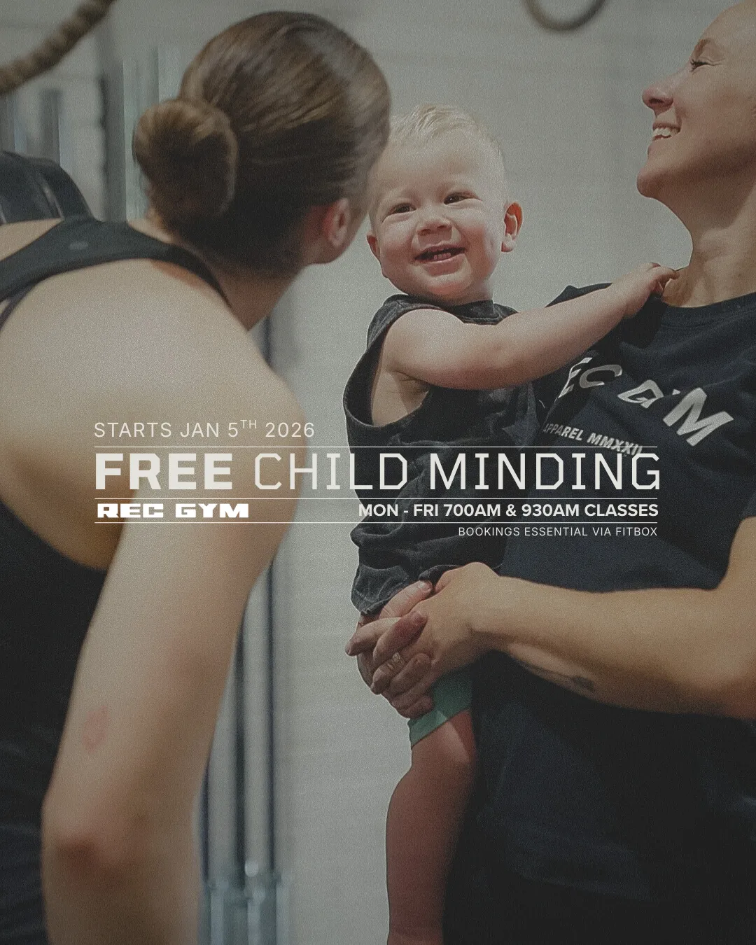 Rec Gym will be offering free child minding upstairs for Unlimited Members during the 7:00am and 9:30am classes, Monday to Friday from 05 January 2026.